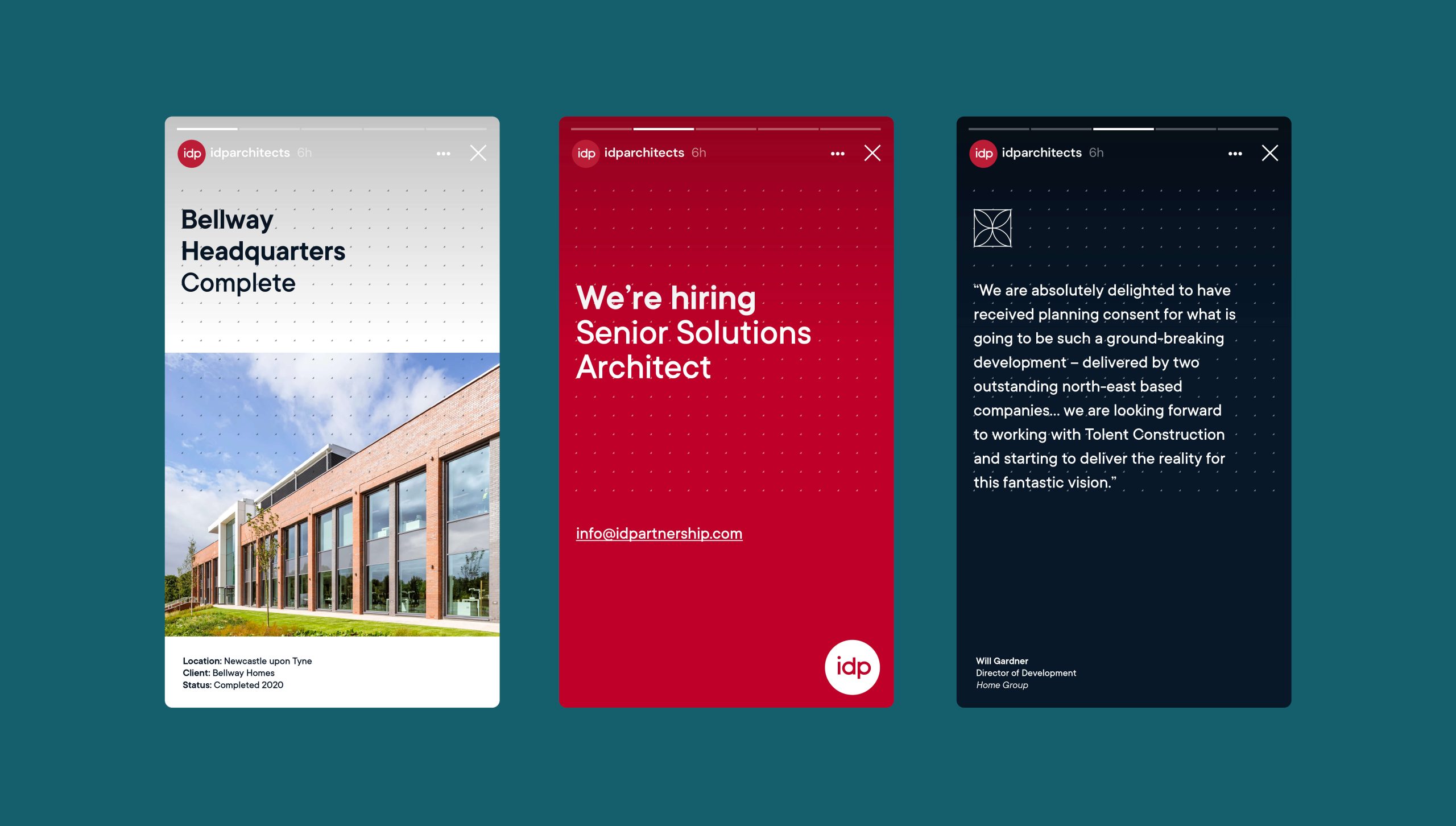 IDP is a multidisciplinary architectural practice based in the North of England, delivering innovative design solutions across a variety of sectors. As the practice entered the next stage of its development, they wanted a refreshed brand that reflected their expertise and creative approach. Drawing inspiration from their workspace and hand-drawn site plans, we updated the brand marque, refined the brand assets, and developed an illustrative visual style. This approach was applied across all documentation, ensuring a consistent, cohesive brand presence throughout the practice’s day-to-day communications.